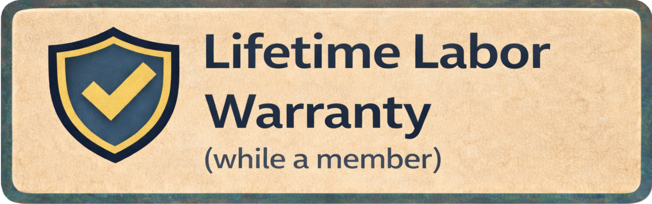 Any repair we perform is covered for labor as long as you remain a member